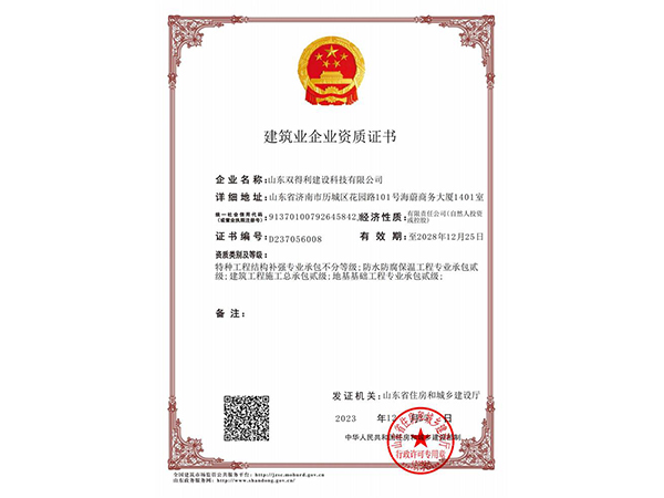山東雙得利建設科技有限公司是一家集科研、工程技術開發、咨詢、工程結構加固改造檢測、設計、施工于一體的綜合性、專業化企業。公司注冊資金5001萬元,具備建筑工程施工總承包貳級、主體結構工程檢測、特種工程結構補強專業承包不分等級、地基基礎工程專業承包貳級、防水防腐保溫工程專業承包貳級、施工勞務不分等級資質。現有高素質人才126人,其中高級工程師6人,一級注冊結構工程師2人,一級注冊建造師3人,一級注冊造價師2人,注冊監理工程師2人,二級注冊結構工程師4人,二級注冊建造師10人,中級工程師30余人,其他專業技術人員30余人。公司所有工程技術人員均從事工程施工行業多年。